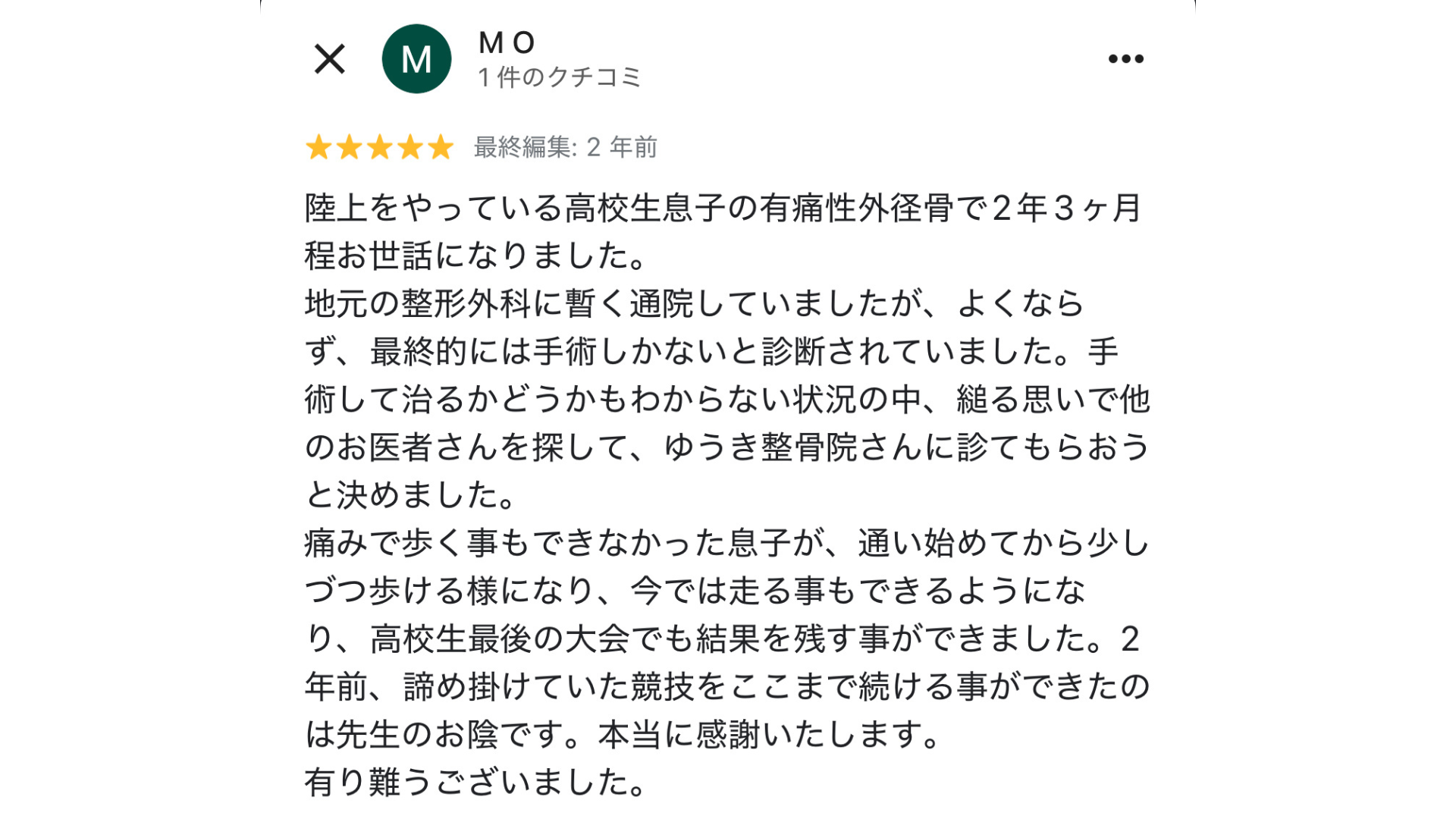 ゆうき整骨院さんで説明を聞いて、こんなにもわかりやすく親身になって自分の不調を一緒になってよくしていこうとしてくれる方に初めて出会いました。