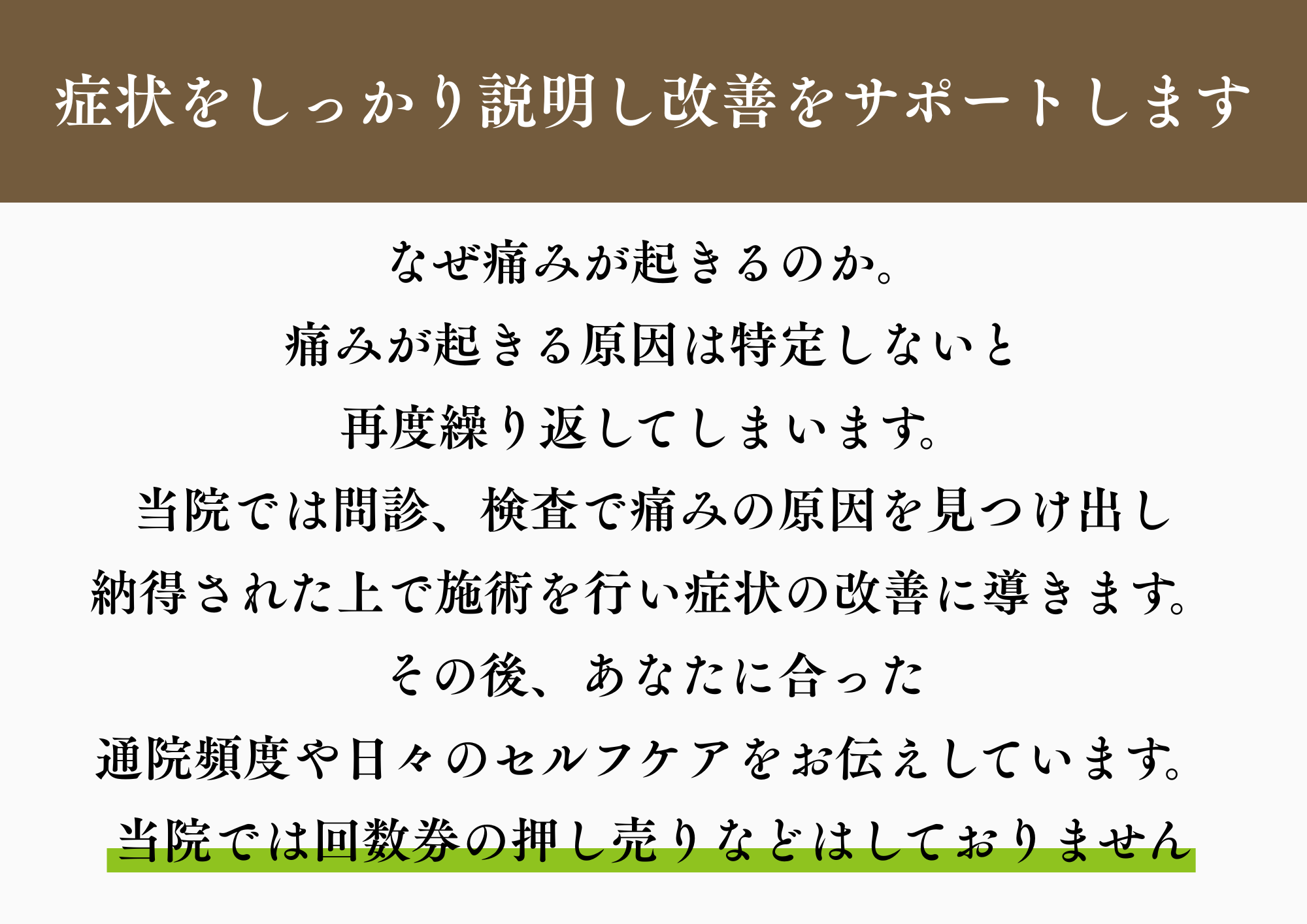 を理念のもと施術を行っております。