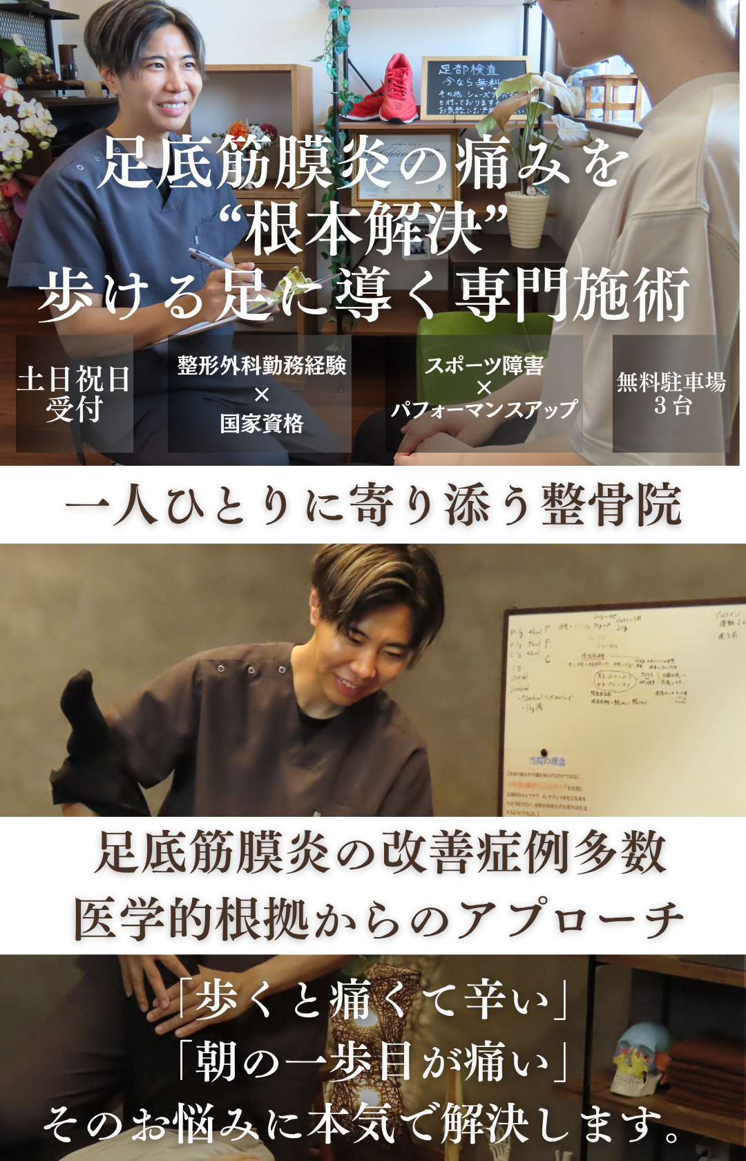 なぜなら、ゆうき整骨院整体院はそのような治らない足底筋膜炎でお悩みの患者様を専門的に治療している専門治療院だからです。