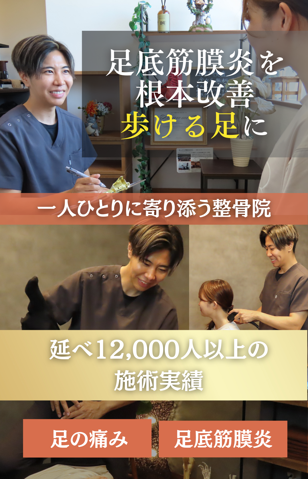 なぜなら、ゆうき整骨院整体院はそのような治らない足底筋膜炎でお悩みの患者様を専門的に治療している専門治療院だからです。