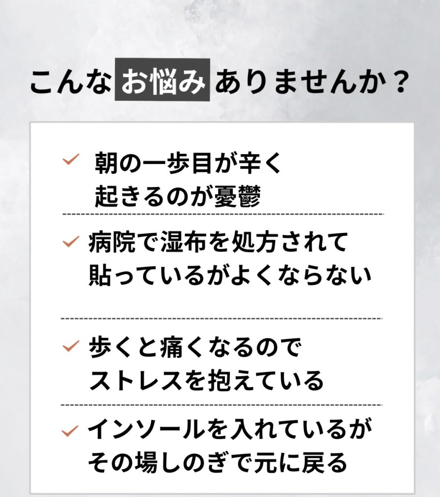 ゆうき整骨院ではそのようなどこに行っても良くならない足底筋膜炎に悩む方の駆け込み寺として多くの患者様から支持されています。一緒に改善を目指していきましょう。